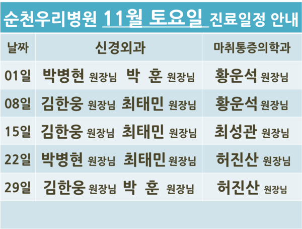 2025년 11월 토요일 진료일정 안내