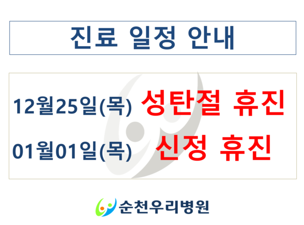 12월25일(목) 성탄절과 1월1일(목) 신정은